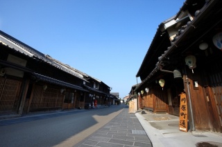 長良橋のたもと、鵜飼観覧船事務所から川沿いに伸びる川原町界隈を散策。格子戸や黒壁を残した古い町並みに町屋を改築したカフェや雑貨屋が並びます。「材木町」「大工町」「布屋町」などの町名が残る、かつての卸問屋街に想いを馳せながら歩いてみて。