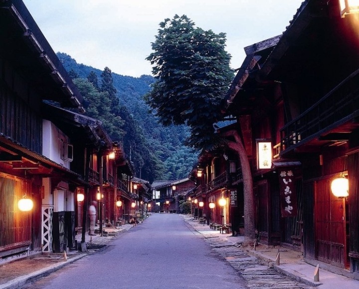 急峻は地形にある宿場町は、全国的にも珍しく、島崎藤村の「夜明け前」の主人公である青山半蔵が見た美しい恵那山を眺望することができます。通りの中央は石畳が敷き詰められ、両脇には格子のある民家、資料館、茶屋、土産物店など、江戸時代を彷彿とさせる家並み。