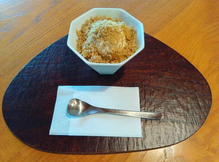 秋とは言え、三大山城の上りくだりには、やや足腰を使いました。疲れを回復するには、座って涼みながら甘味を食しつつの、コーヒータイムですね。