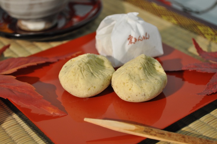 と、車を運転していると、またまた、栗きんとんで有名なお店を発見! 吸い込まれるように店内に入り、栗きんとんをお土産に買いました。