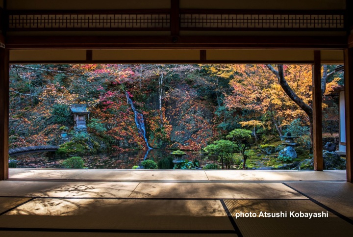 庭園内に豪爽に響き渡る滝の音は、庭園と観る物を結びつける。芽吹きの春、涼やかな青モミジ、錦秋の彩り、そして冬の雪景色など、四季の趣きを堪能できます。郡上八幡の観光スポットとして外せませんよ!