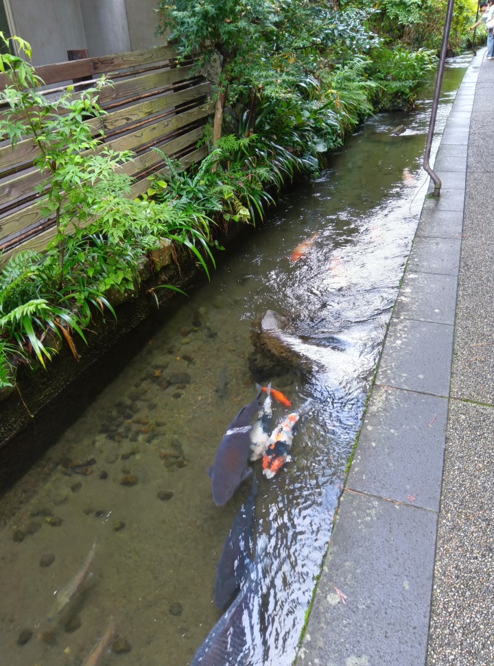郡上八幡旧庁舎記念館近くを流れる用水路で、鯉や川魚が泳いでいます。家の裏手を流れ、用水の途中には共同洗濯場が3箇所あり、近所の方々の社交の場にもなっています。昔ながらの暮らしの風景に水がとけこむ風情のある小径です。