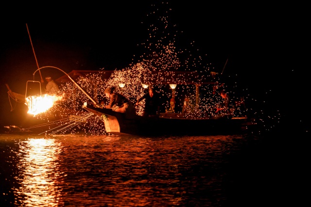 かがり火の鵜飼い舟(小瀬鵜飼)@konajiro