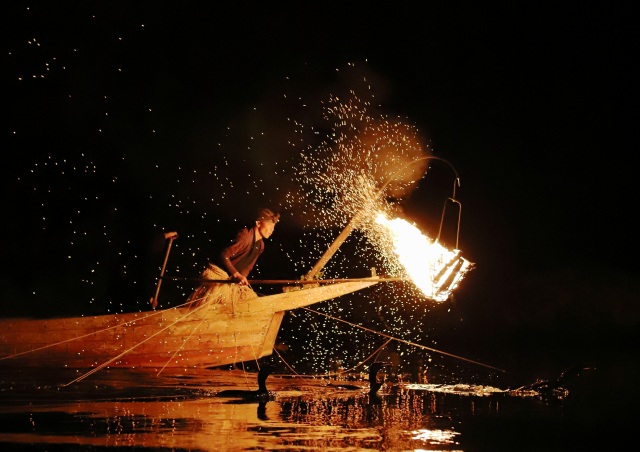 かがり火の鵜飼い舟(小瀬鵜飼)@konajiro
