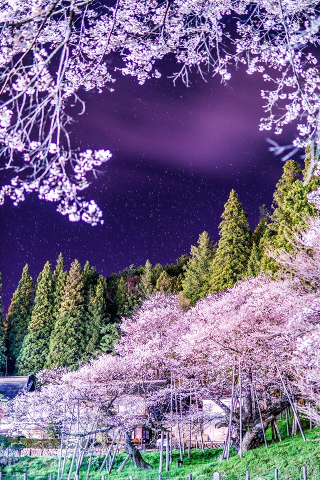 夜桜と篝火(高山市・朝日町の青屋神明神社)@HIROSHI SUGIYAMA