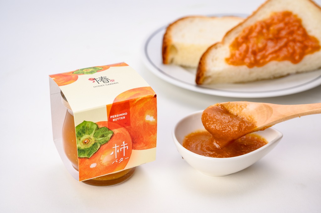 岐阜県特産の富有柿をふんだんに使い、国産のバター、岐阜県産のはちみつも加えて作った柿バター。トーストにぬって召し上がれ。