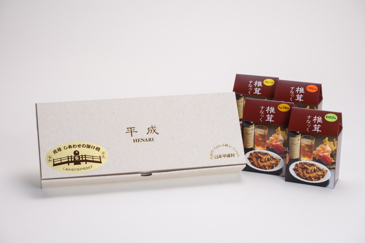 関市の名産「平成椎茸」を手軽に食べれるよう特殊製法でカラリと揚げ、サクッとした食感のスナック菓子にしました。