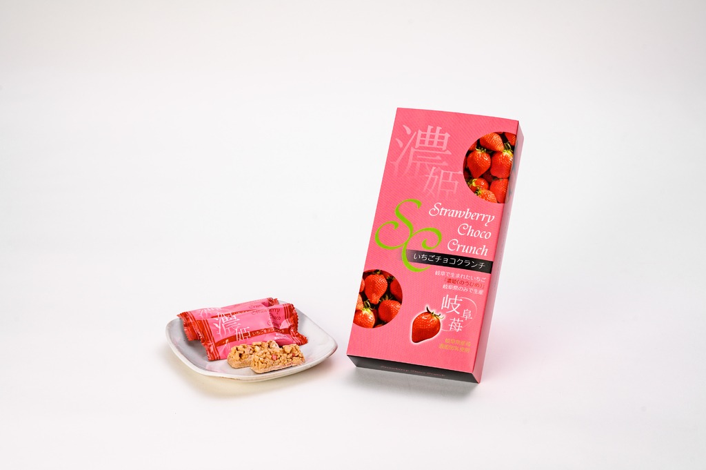 甘さ控えめのホワイトチョコと香り高い濃姫いちごのクランチの相性がぴったり。