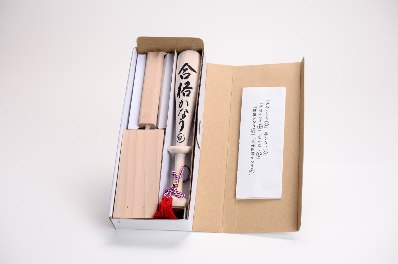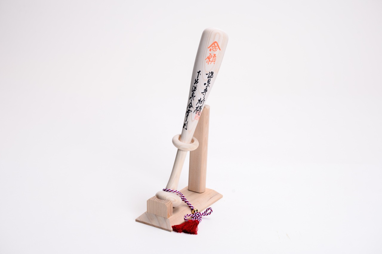 東濃ひのきを使用した念願成就の縁起物。バットへの名入れサービスも行っています。