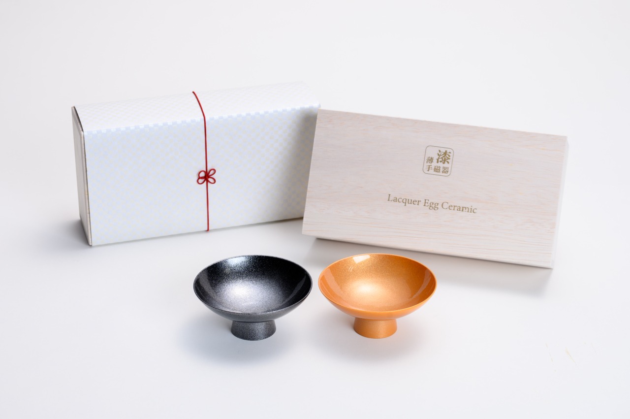 漆薄手磁器 Lacquered Egg Cermic 平盃ペア[丸モ高木陶器]