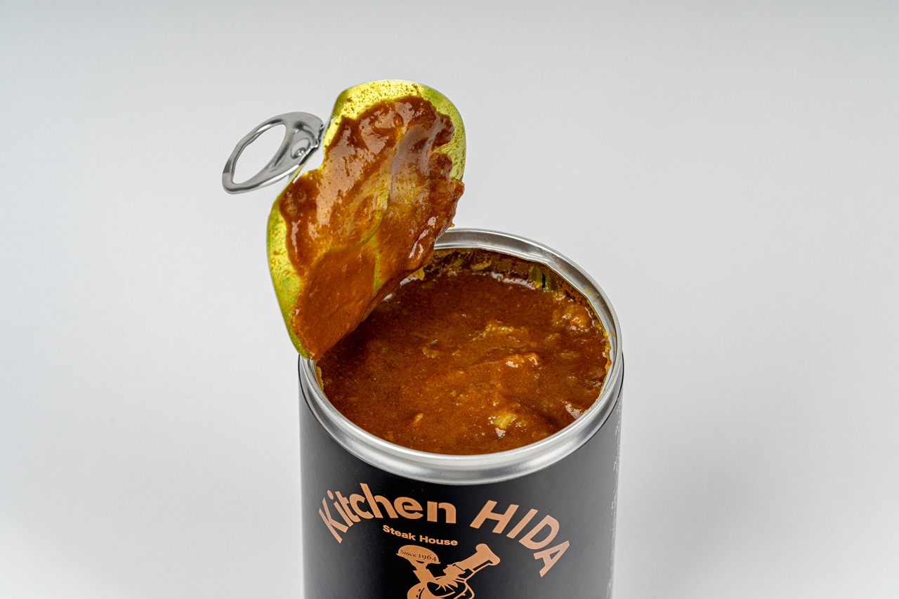 1缶に肉厚な飛騨牛を4片も入れて贅沢に仕上げました。隠し味に地酒の酒粕を入れることで、深みあるまろやかな味わいです。