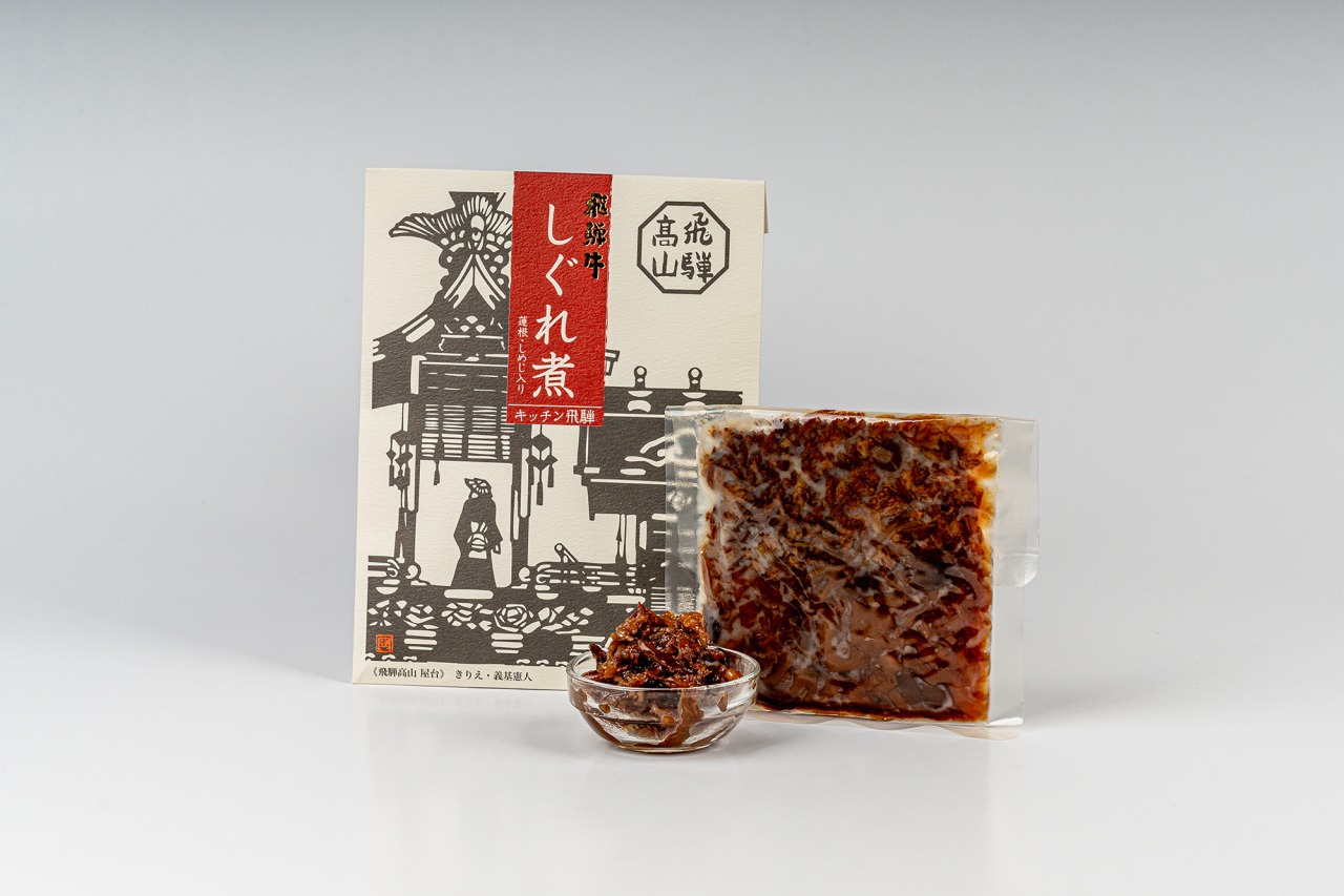 飛騨牛と国産の蓮根、しめじ、生姜を使用したしぐれ煮です。