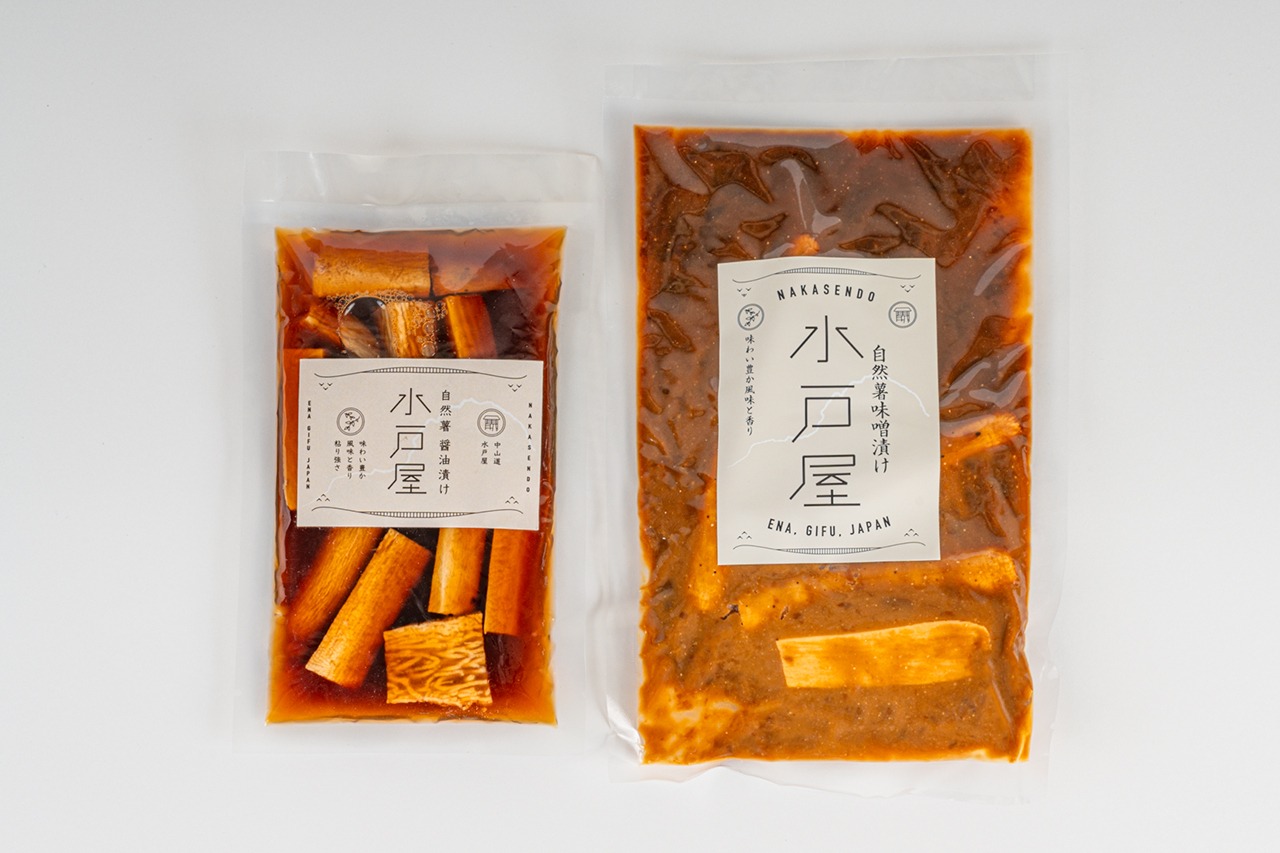 自然薯の食感、風味を活かしたお漬け物。土岐市の老舗が漬けたグルテンフリーの醤油味とまろやかな味噌味のセット