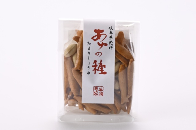 国内産水稲もち米使用(主に岐阜県産・秋田県産)、仕込み水は揖斐川町谷汲の美味しい水。子鮎型あられにピーナッツを組み合わせました。