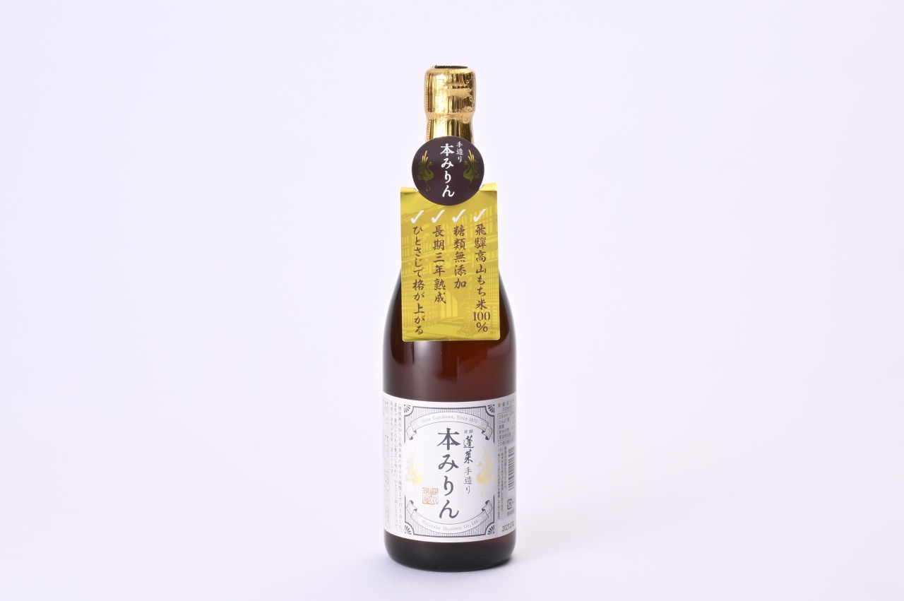 飛騨の清らかな水とブランド米たかやまもちで仕込む三年熟成本みりん。糖類・添加物不使用、伝統製法で引き出した米の豊潤な香りと深い甘みが広がる、土産にも喜ばれる逸品。
