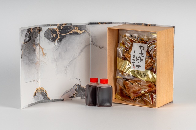 - 酒、味醂、醤油、砂糖、飛騨味噌のタレの中で飛騨牛に火を通し旨味を閉じ込め、そのタレに牛蒡、しめじを煮込んで肉と合せて仕上げます。令和5年度推奨 第202408号