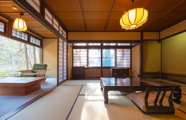 客室は、飛騨の木材と伝統工芸・春慶塗を贅沢に使用した貴賓室等倭乃里には四棟四室、異なる趣向を凝らした個性豊かな合掌造りの離れと いずれも歴史と日本の文化を感じさせる自慢の建物で、夏は涼しく、冬は暖かい飛騨の風土に適した造りとなっています。