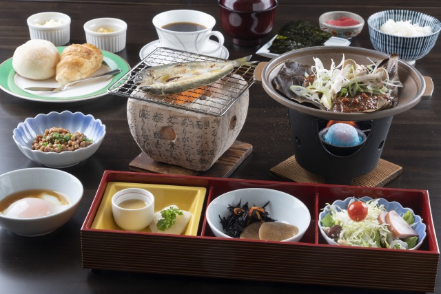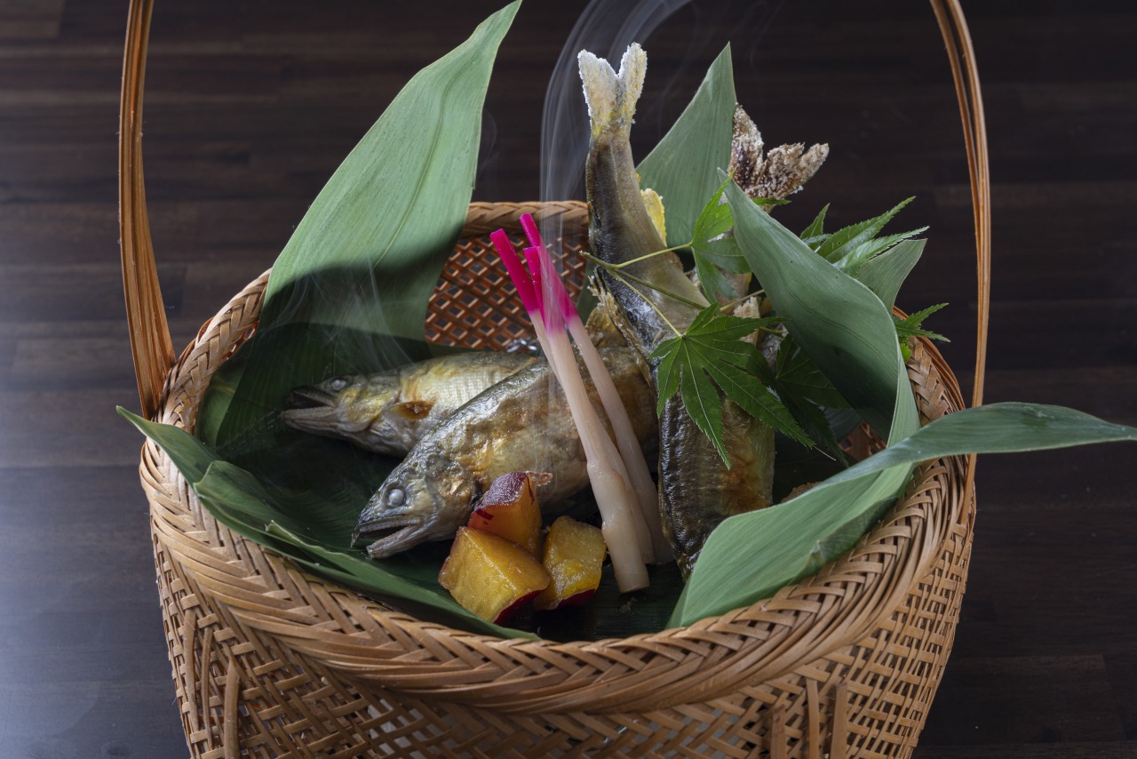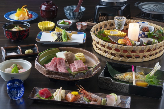 お食事は、飛騨牛、鮎など地元の食材を使用した和食会席をお出ししております。