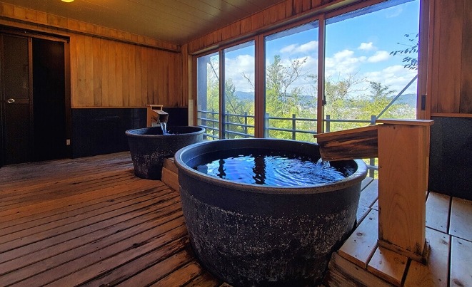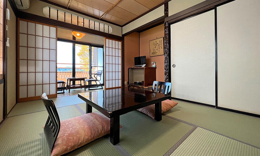 純和風の客室には専用の露天風呂 があり、プライベートな空間に癒されます。