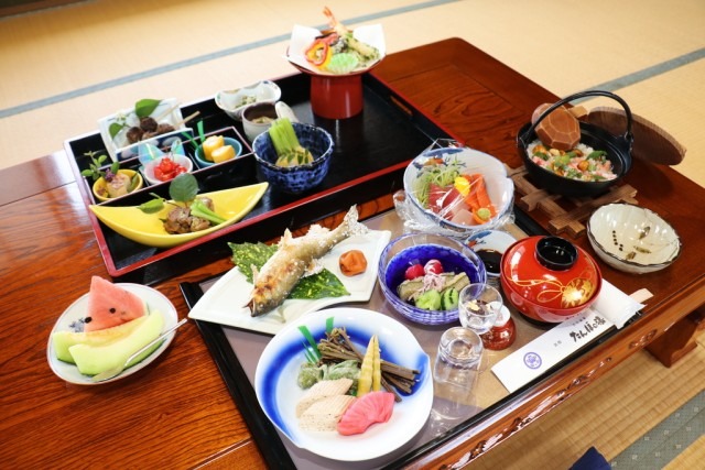 早速、地酒を一献!・・・そして、日本海の幸、飛騨路のめぐみで織りなす“手作りの味”を舌づつみ・・・