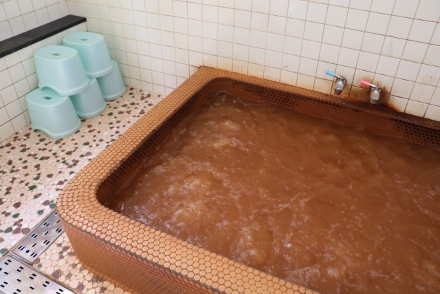 その昔、夢のお告げにより授かった”赤い湯“・・・白いタオルも一度で染め上がる、リピーター評判の名鉱泉!源泉地は市街地のど真ん中・・・市役所続き!