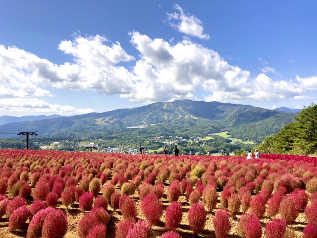 約2km四方に広がる秋の高原を鮮やかに彩り躍動感にあふれ見事です。