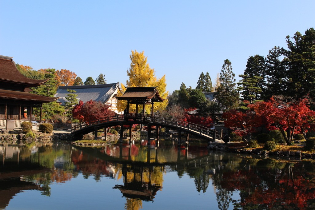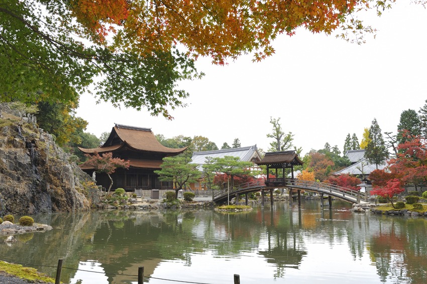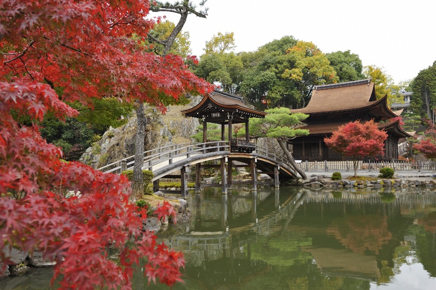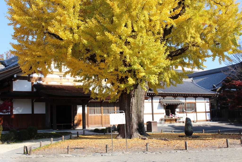 燃える様に色づくモミジが池を囲み、樹齢700年の大イチョウが黄金色に輝く眺めは、時間を忘れさせてくれます。
