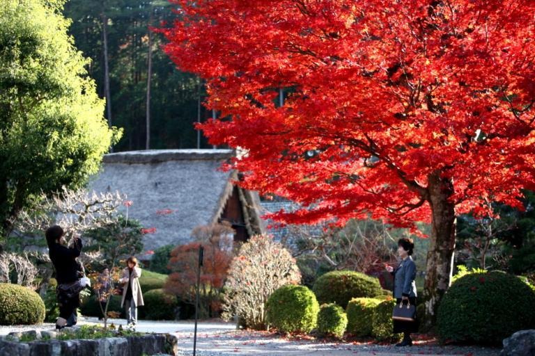 飛騨・美濃紅葉33選にも選ばれた紅葉の名所です。合掌造りを背景に、カエデやケヤキなどの紅葉を満喫できます。