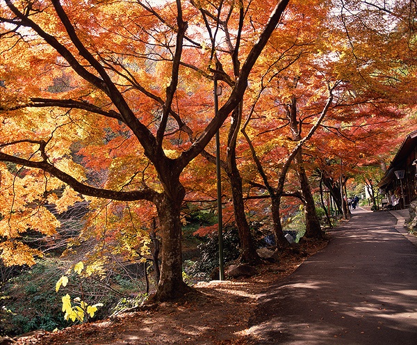 例年、11月中旬から12月上旬に紅葉の見頃を迎え、山全体が赤や黄に染まり、園内の散策路は、モミジやカエデのアーチが掛かりロマンチックな雰囲気に包まれます。