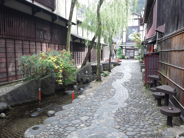職人町、鍛冶屋町といった町名を歩けば、そこには古い家並みとその軒先を流れる水路があります。