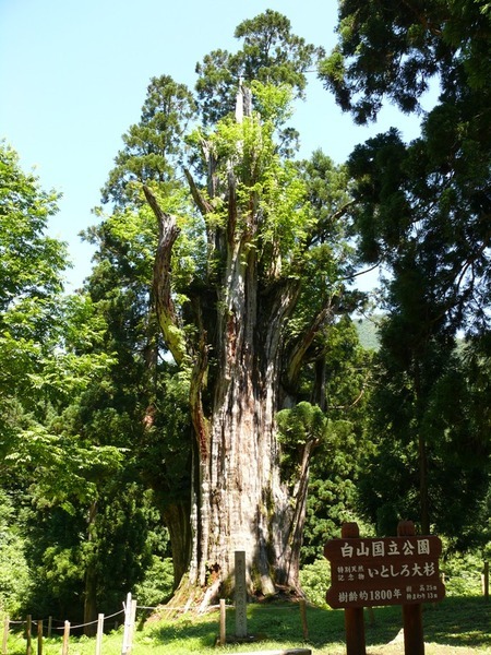大人12人が手をつないでやっと囲める「石徹白大杉」は国特別天然記念物で、住民が守り続けてきた白山中居神社境内にも杉の大木が林立し、訪れた者を圧倒します。