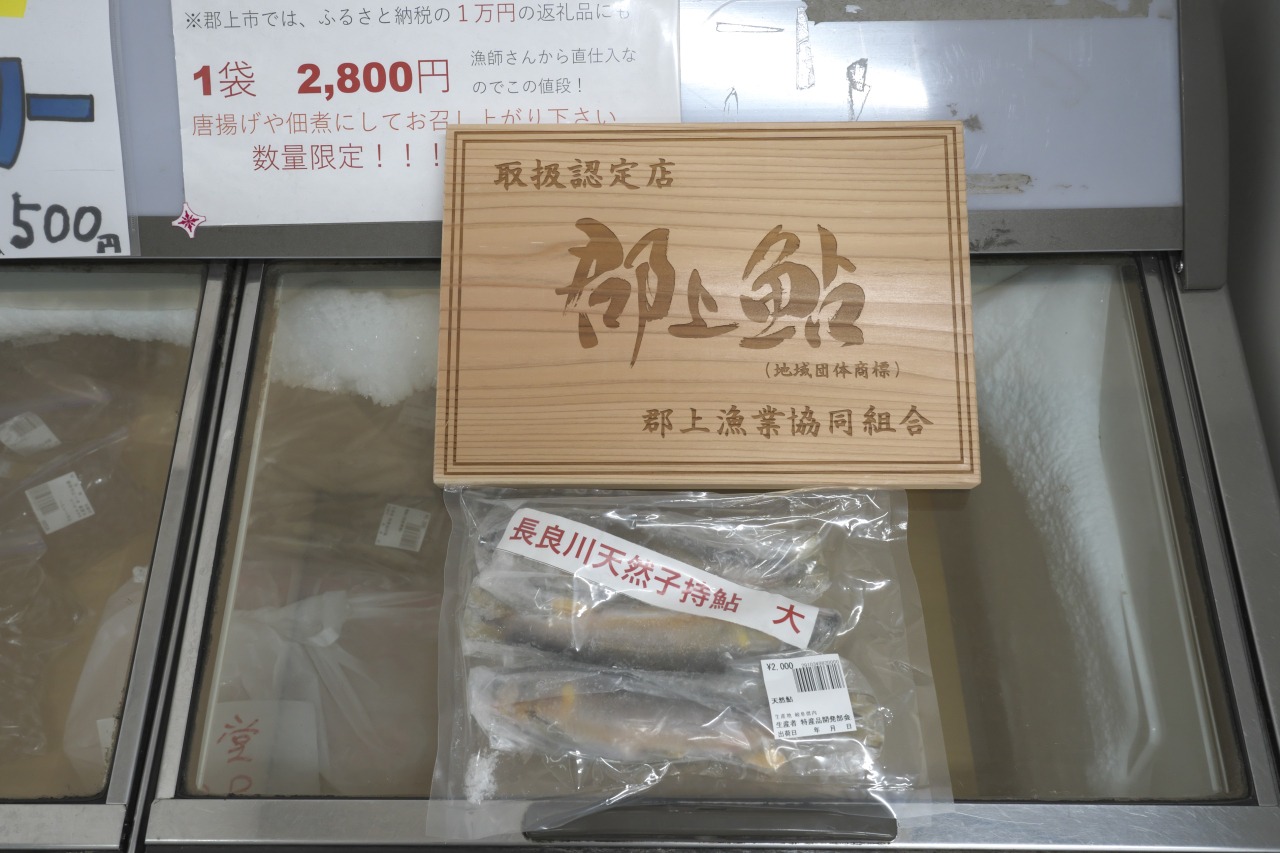 朝市は、70人ほどの地元登録農家が採れたて野菜を販売。地元の加工組合が作る地味噌は、豆、米、麦と3種類があり、リピーターが多い人気商品。長良川の天然アユは冷凍の真空パックや一夜干しなどが揃い、郡上鮎と美濃鮎、両方が入荷する珍しい販売所です。(価格は年により変動)