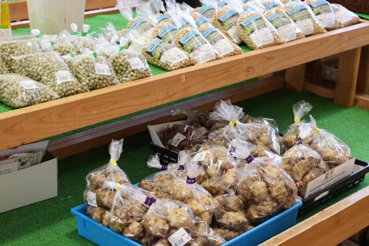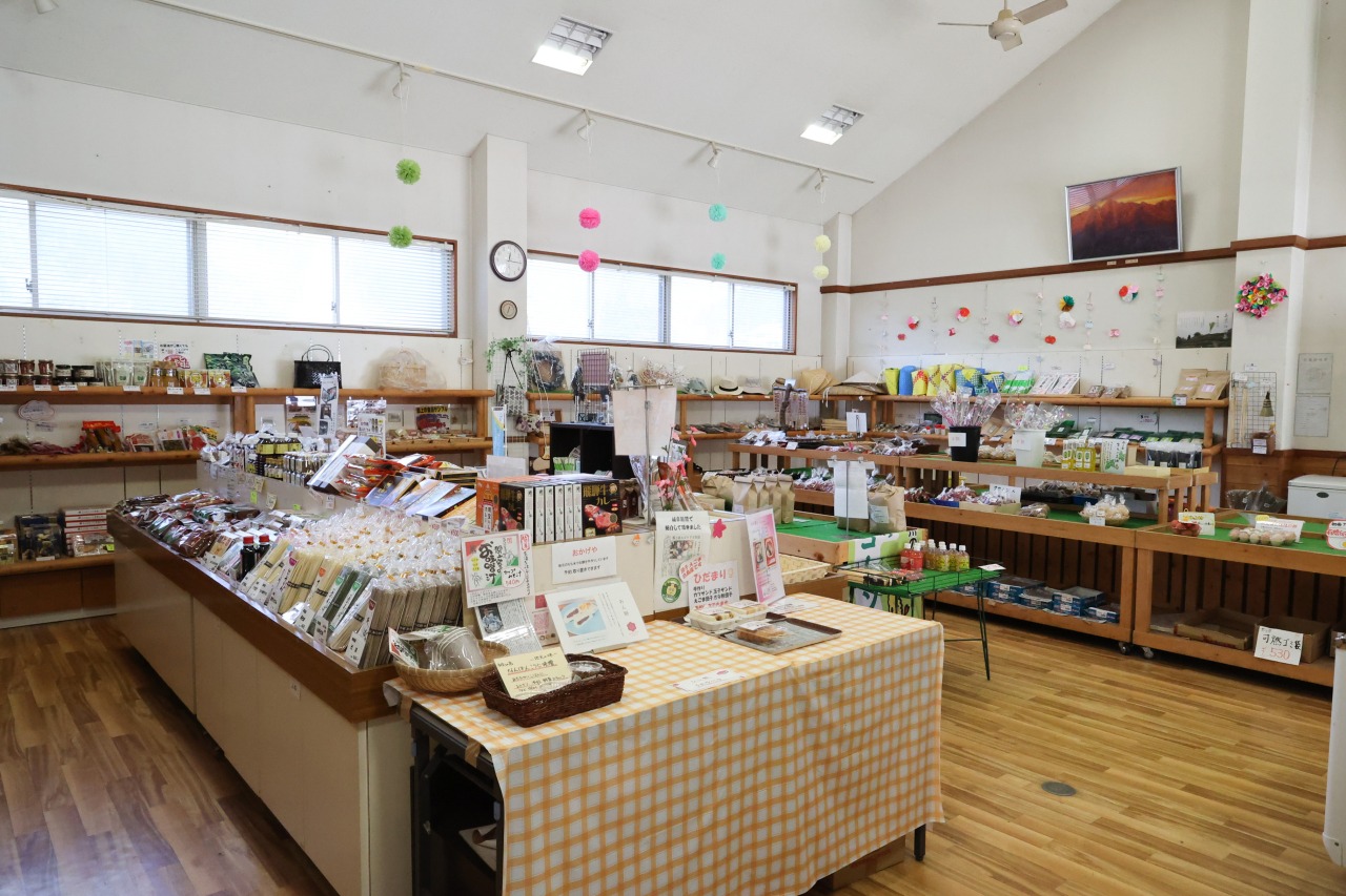 周囲はキャンプ場やスキー場、紅葉の名所などの観光スポットが充実。レジャーに向かうドライバーたちの安らぎの場として活用されています。「新鮮朝市」では「六ノ里棚田米」をはじめ、地元農家の手がけた新鮮な旬野菜や生花を販売。地酒の種類も豊富です。