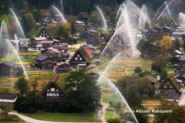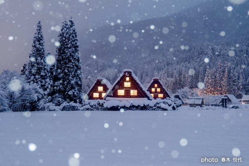 日本有数の豪雪地帯で、少し前までは日本の秘境といわれた厳しい気候風土のこの地域で4ヶ月もの長い間、豪雪に耐えながら合掌造りの民家の暮らしが営まれています。