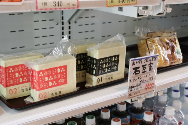 老舗菓子屋が手がける昔からの名物「紫蘇もなか」と「どぶろく羊羹」は、今も変わらぬ白川郷の銘菓。紫蘇もなかは、こしあんに香る紫蘇の風味がさわやか。どぶろく羊羹は、芳潤などぶろくの味をそのまま羊羹にしたようなインパクトのある逸品で、お土産に最適なミニサイズも。また、白川郷の郷土料理「石豆腐」が購入できます。国産大豆と白川村の湧き水を使って作られた地元に愛される味です。