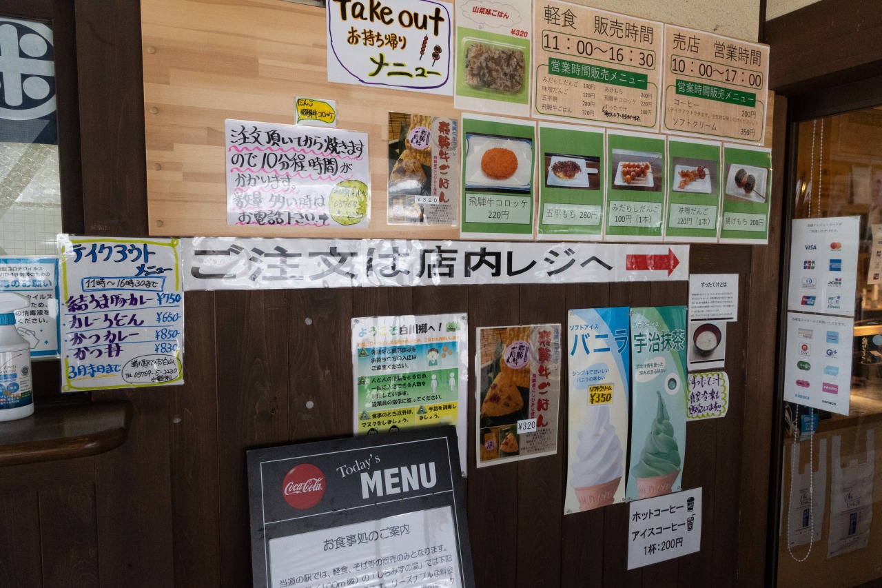 御母衣(みぼろ)ダムの北に位置する道の駅で、温泉施設「しらみずの湯」に隣接しています。世界遺産・白川郷を訪れる観光客や、ドライブ・ツーリングを楽しむ人が立ち寄ることが多く、白川のブランド豚・結旨豚を使ったカレーや、郷土料理「すったて汁」を楽しむことができます。EV(電気自動車)用急速充電器を完備。