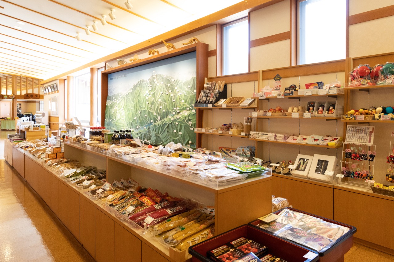 夏から秋は地元の人が持ち込む新鮮な野菜の直販も。夏はキャベツが、秋は栗や大根が特に人気だそう。足湯には、「足湯ビニール」が販売されていて、衣類の着脱を気にすることなく足湯に漬かることができるので、ドライブの休憩にも気軽に楽しめます。また、敷地内には温泉入浴ができる「しらみずの湯」があり、ゆったりくつろぐことができます。「子宝の湯」として親しまれていて、美肌効果も期待できます。