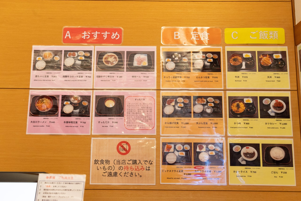 軽食コーナーで食べられる「すったて汁」は、白川の人々に昔から愛されてきた郷土料理。「すったて」はゆでた大豆をすり鉢などですったもので、飛騨牛などを入れた地元の味を楽しめます。