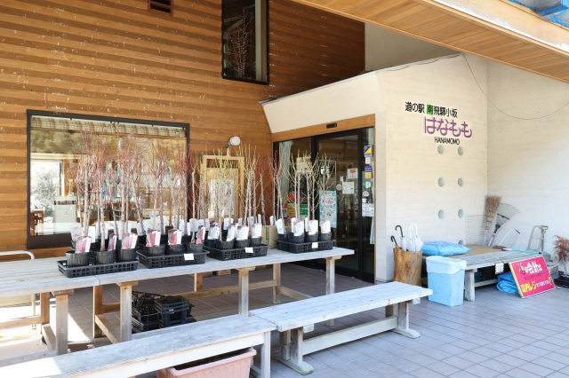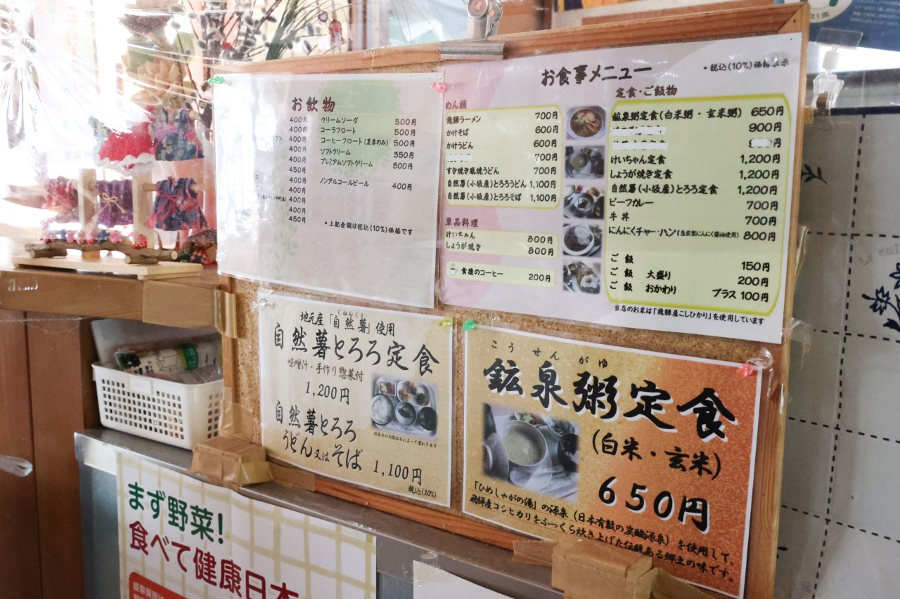 鉱泉粥定食などの食事が楽しめる「はなもも喫茶」と、売り切れ必須の「五平餅」や「みだらし団子」を販売する「屋台」があります。