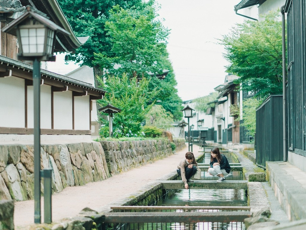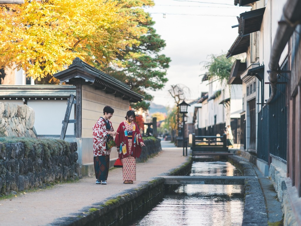 飛騨市の中心部に位置する「瀬戸川と白壁土蔵街」は、歴史ある町並みと自然が調和する風情豊かな景観が魅力のスポットです。白壁の土蔵が美しく連なる通り沿いには、清らかな水が流れる瀬戸川があり、4月から11月には色とりどりの鯉が優雅に泳ぐ姿をご覧いただけます。