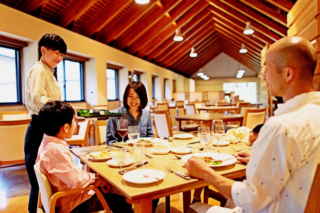 大自然に触れ合う自然体験プログラムは大人も子供も参加でき、ここでしかできない貴重な体験!研修施設の他に、ホテルは地域の食材を使ったフランス料理レストランや木材を贅沢に使用したゆったり寛げるお部屋、満天の星空を見ることができる天然温泉の露天風呂があります。