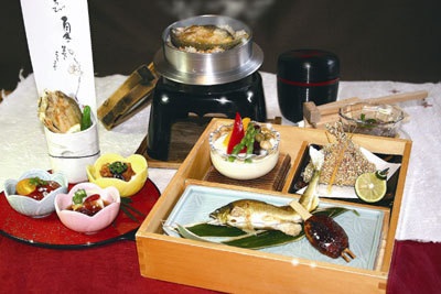食堂車では、通年実施している「寒天」をはじめ、季節に応じ、「きのこ」「じねんじょ」など、沿線の風景を楽しみながら、地元の食材を生かした料理を車内で味わうことができ、大人気です。(要事前予約)
