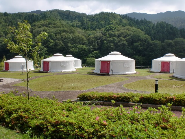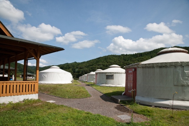 モンゴル村は、道の駅「上矢作 ラ・フォーレ福寿の里」の敷地内にあり、モンゴルの移動式住居「ゲル」に泊まることが出来るキャンプ施設。