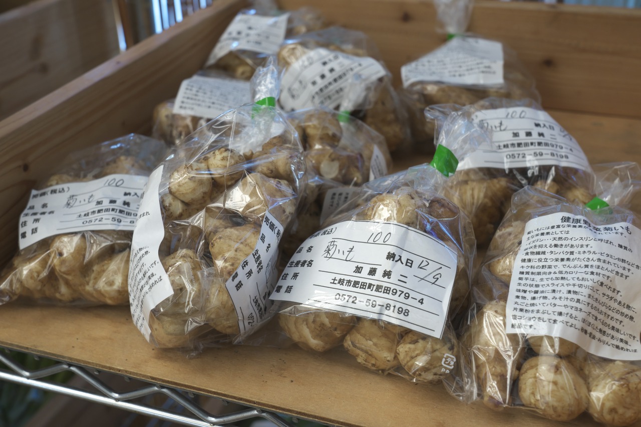 農産物直売所では、地元・土岐市の旬の野菜がお手頃価格で手に入るため、午後には売り切れることも。
