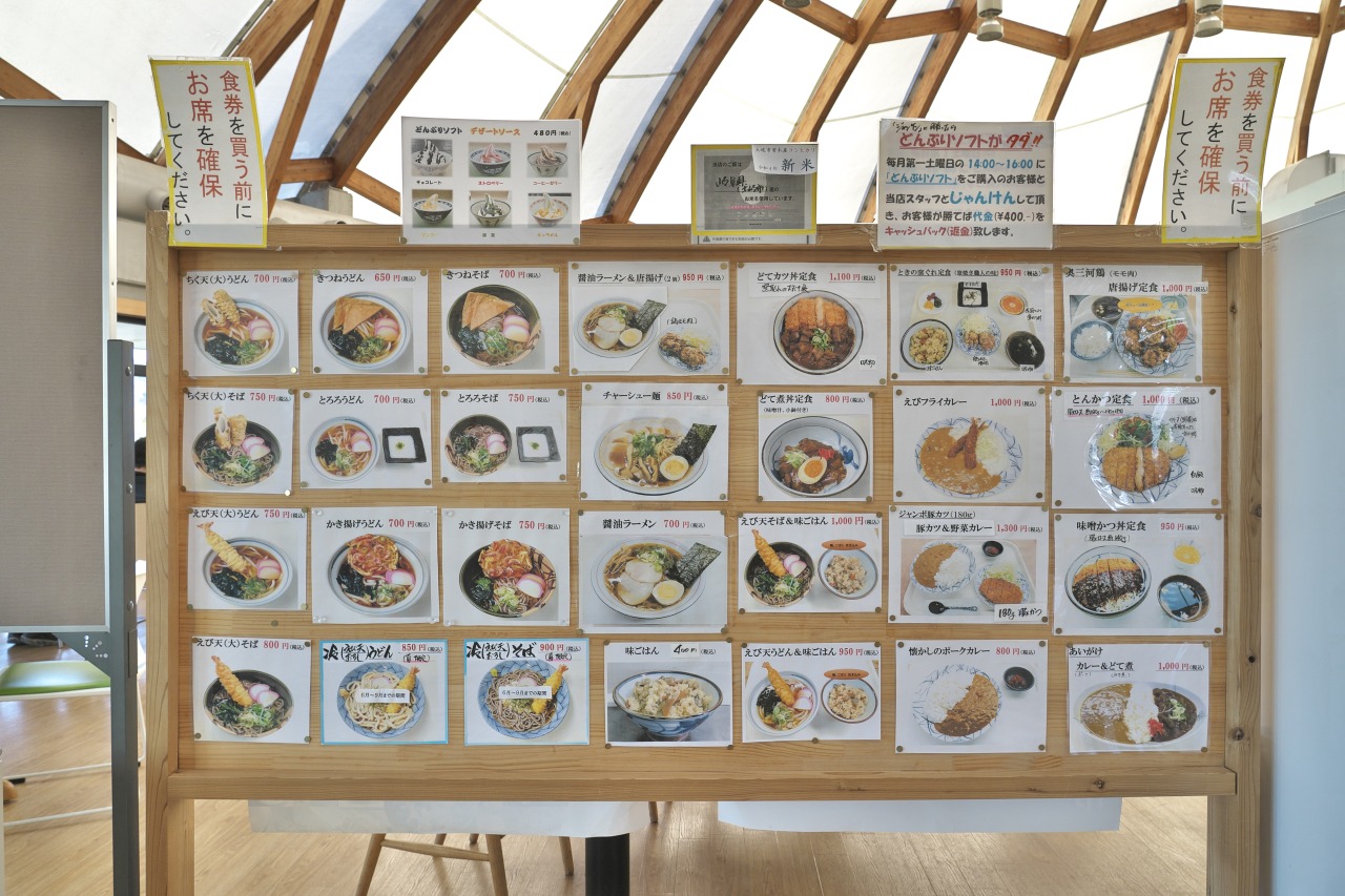 「どんぶりソフトクリーム」は道の駅ができたときから続く名物メニュー。4種類の中から選んだ器に、ソフトクリームを山盛りにのせてくれます。食べ終わったあとの器はそのまま持ち帰ることができます。ソフトクリームと同じく、どんぶりを持ち帰ることのできるランチも人気。