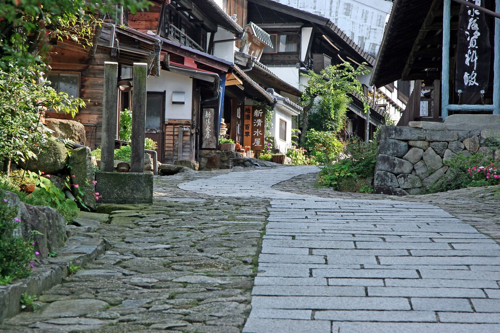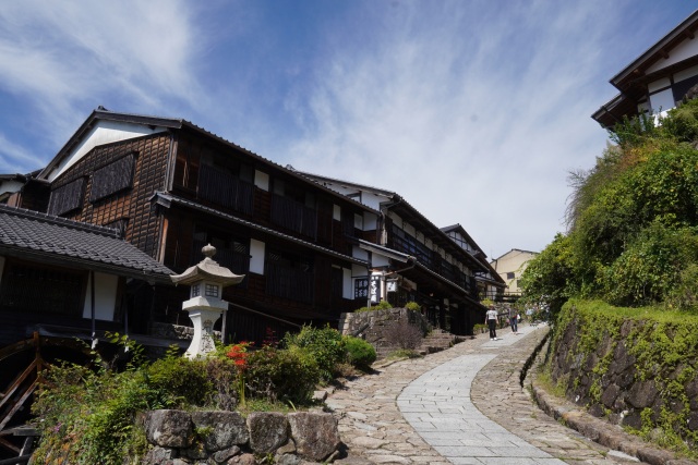 馬籠宿は、石畳が敷かれた坂に沿う宿場町。日常から離れ、水のせせらぎ、小鳥のさえずり、街道を横切る風を感じながら、粋なひとときをお過ごしいただけます。