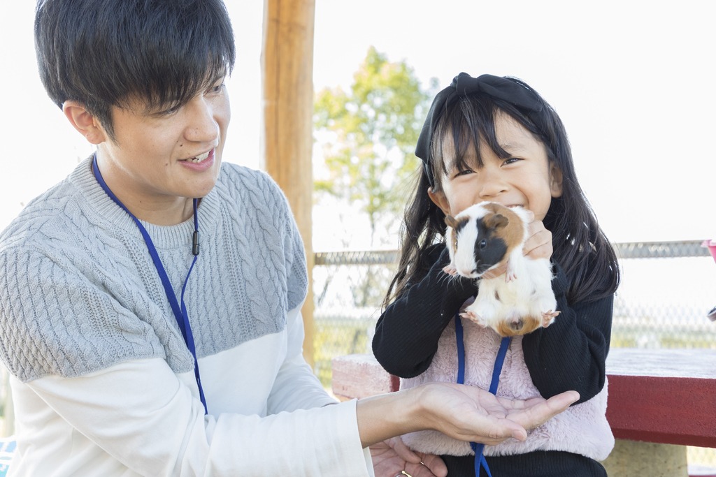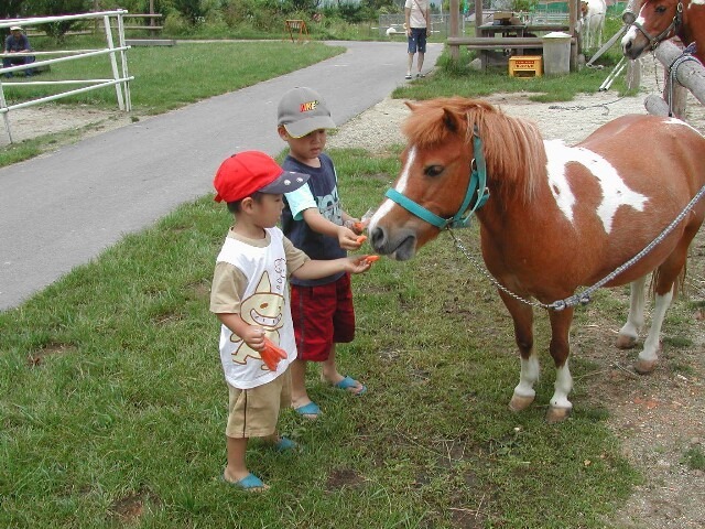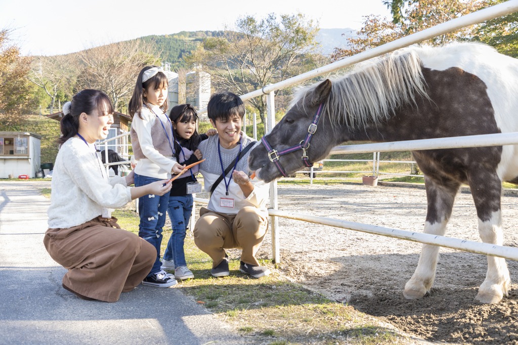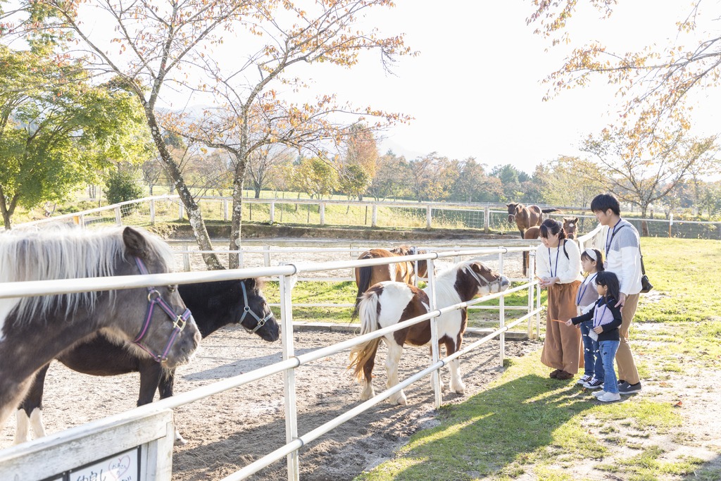 牧場内では羊、ポニー、山羊、うさぎなどの動物たちが放し飼いにされ、訪れた人たちは間近でふれあうことができます。
