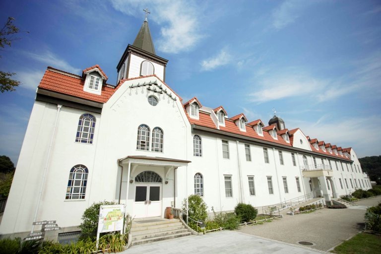 虎渓山の麓にそびえるバロック建築の修道院。昭和5年ドイツのモール神父によって建てられました。