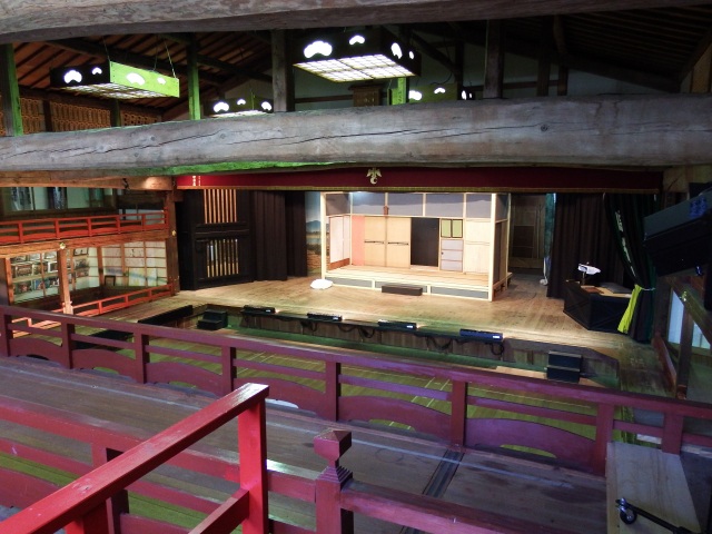 両花道・回り舞台等を備え、客席は平土間で左右と後方の二階に桟敷が設けられた本格的な舞台機構を完備した芝居小屋です。