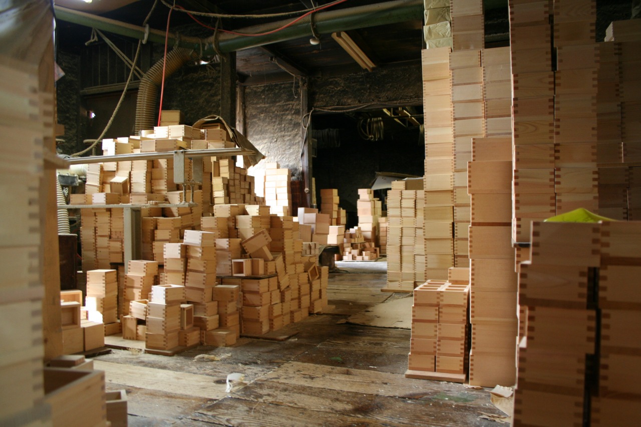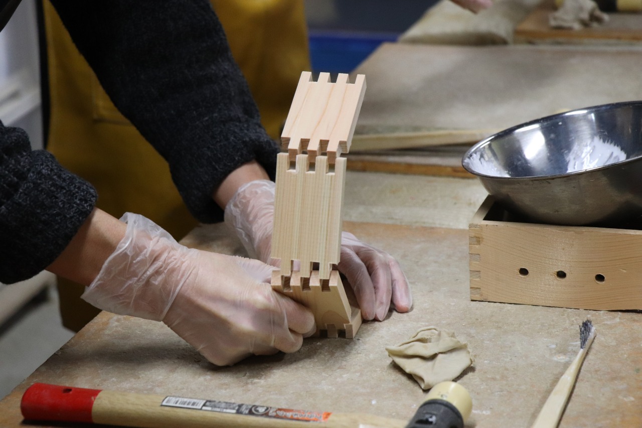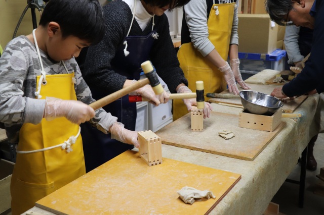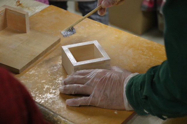枡工房ますやでは、一合枡の組み立てから、完成までの一連の作業が体験できます。(1週間前までに要予約)